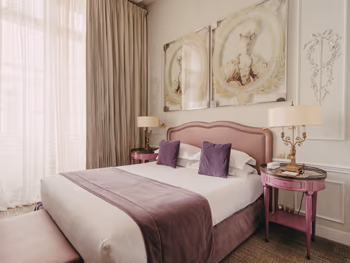Idéalement situé, non loin de l’Opéra Garnier et de la Place Vendôme, cet établissement abrite 39 chambres et suites, de la plus classique à la plus luxueuse, en passant par des formats familiaux ou en duplex. Chacune incarne une interprétation subtile de l’époque, où textures, motifs et lumières s’unissent pour plonger le visiteur dans un autre temps, sans pour autant renoncer au confort contemporain.